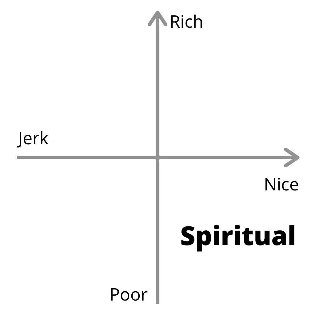 The vertical axis is about how much money somebody has. It’s basically a scale between filthy rich and dead poor. The horizontal axis is about how nice somebody can be. At its lowest, we see absolute jerks, and at its highest we see really nice persons.